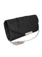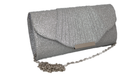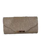 Bolsa clutch de mano para dama modelo EVB613, un accesorio elegante y sofisticado ideal para eventos especiales como bodas, fiestas, graduaciones y cenas formales. Su diseño clásico con solapa plisada y acabado brillante la convierte en la opción perfecta para complementar cualquier vestido de noche.