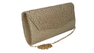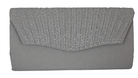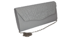 Bolsa clutch de mano para dama modelo EVB614, diseñada para dar un toque elegante y moderno a tu look en cualquier ocasión especial. Su diseño con solapa plisada y aplicación de pedrería en la parte frontal resalta con brillo sutil, ideal para fiestas de noche, bodas, graduaciones o eventos formales.