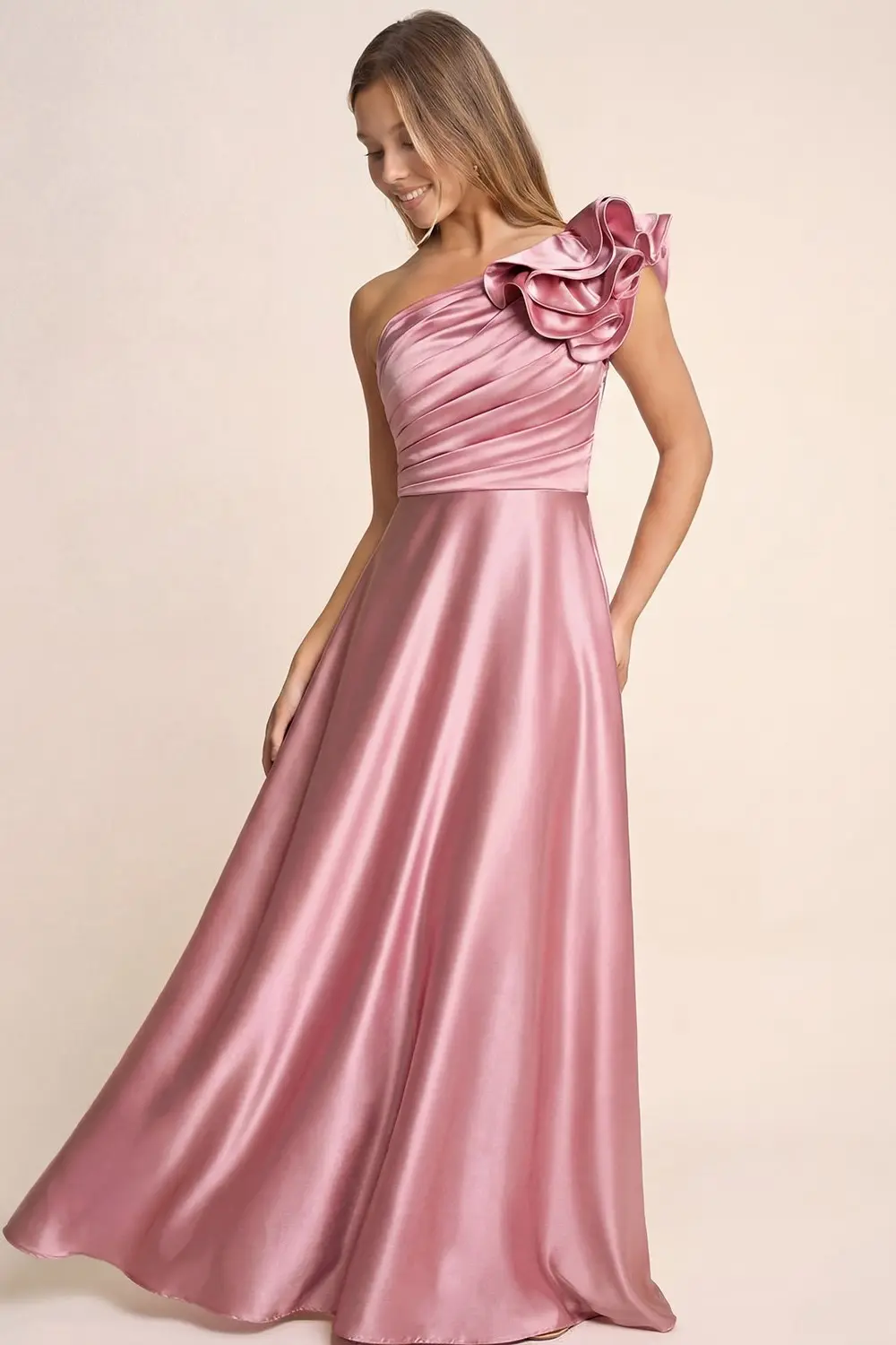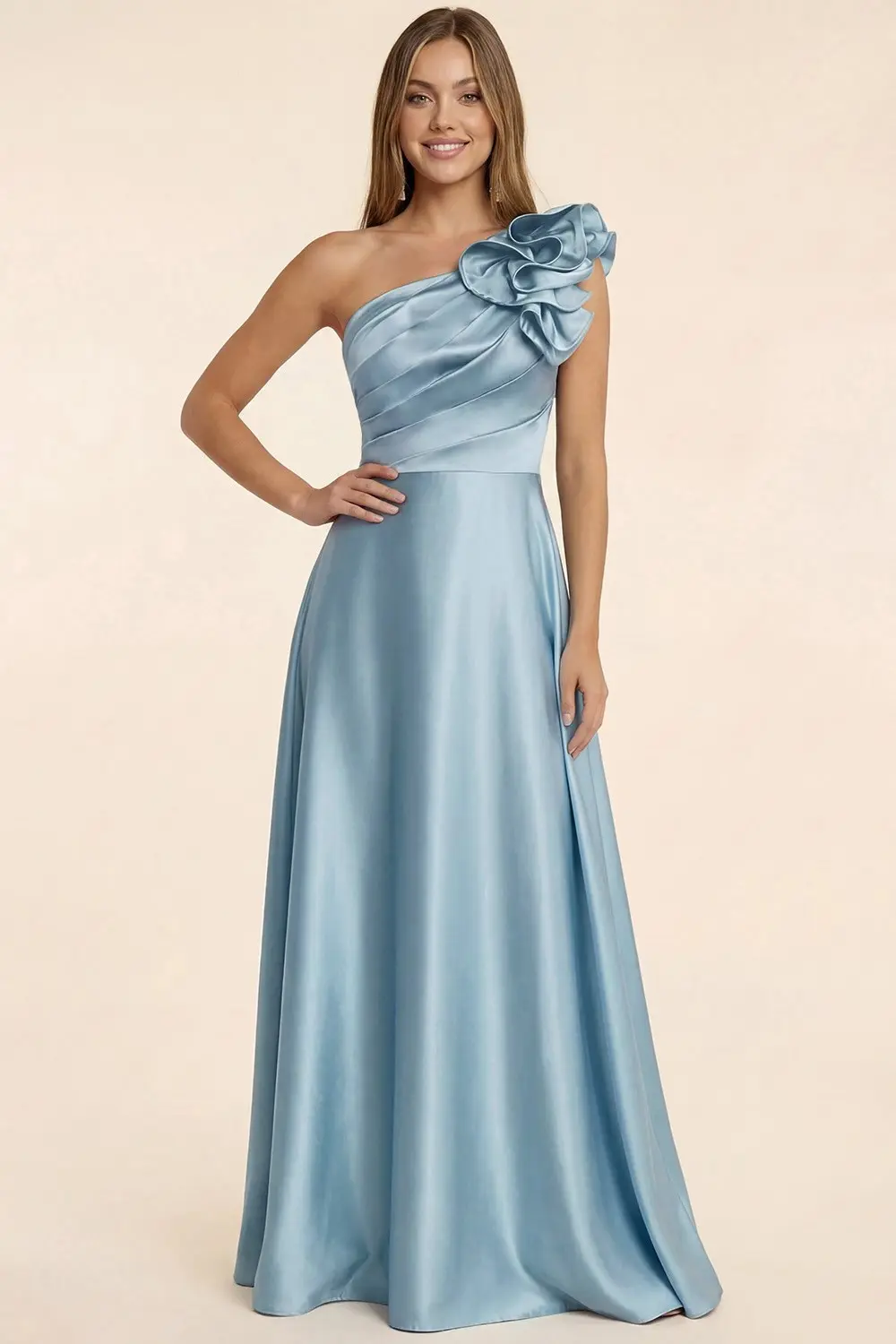 Vestido de Fiesta con Flor en Hombro – Elegancia y Estilo Romántico