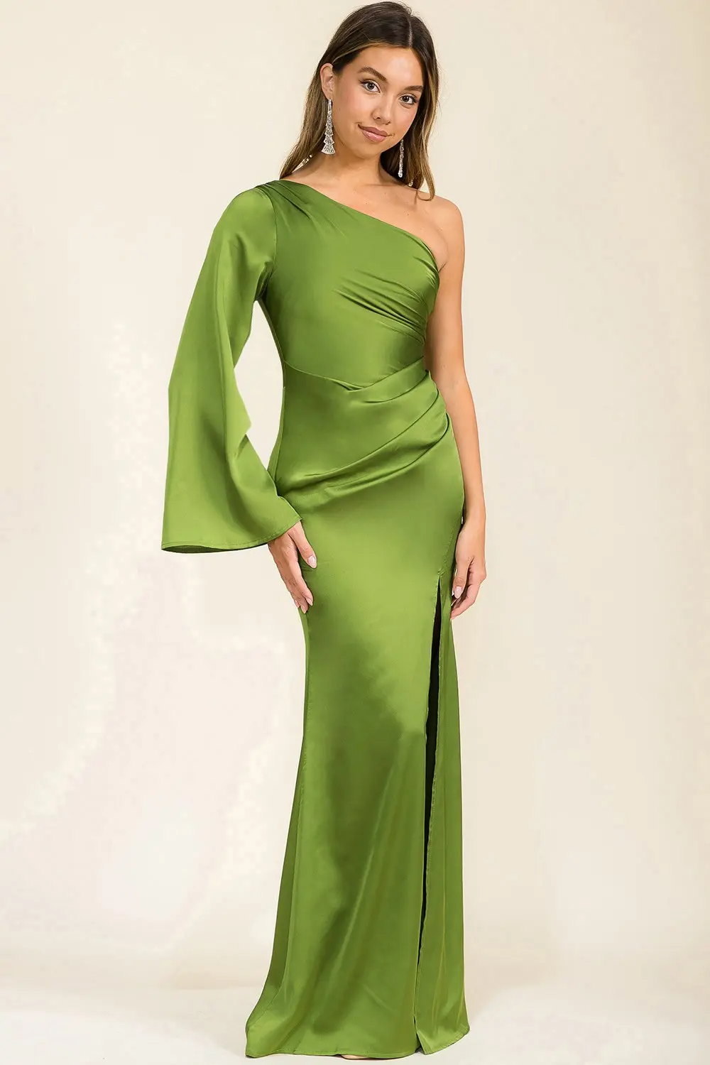 Vestido de Fiesta EV960 – Elegancia Asimétrica con Manga Fluida ✨