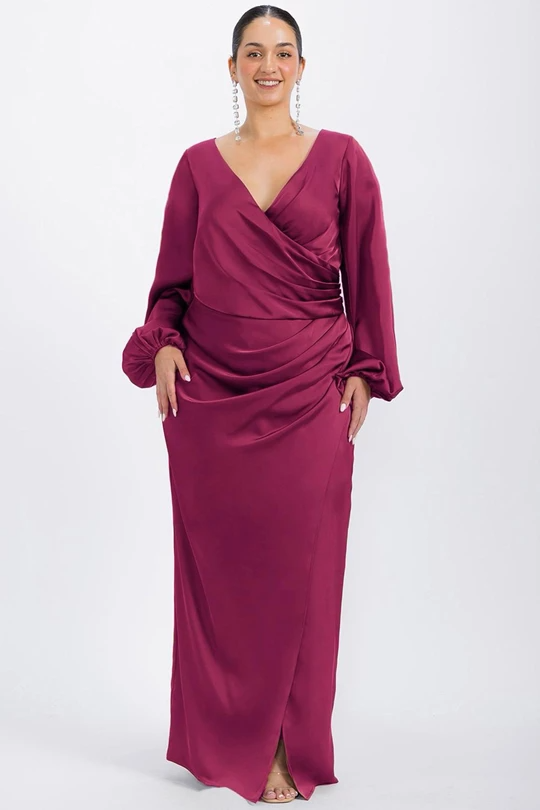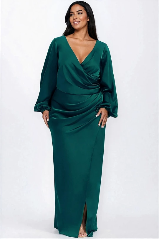 El vestido EV958 de Emma Velázquez es la definición perfecta de elegancia femenina y sofisticación atemporal. Su diseño largo con escote en V cruzado estiliza el busto, mientras que el drapeado frontal estratégico realza la silueta y disimula el área del abdomen de forma favorecedora 💫.