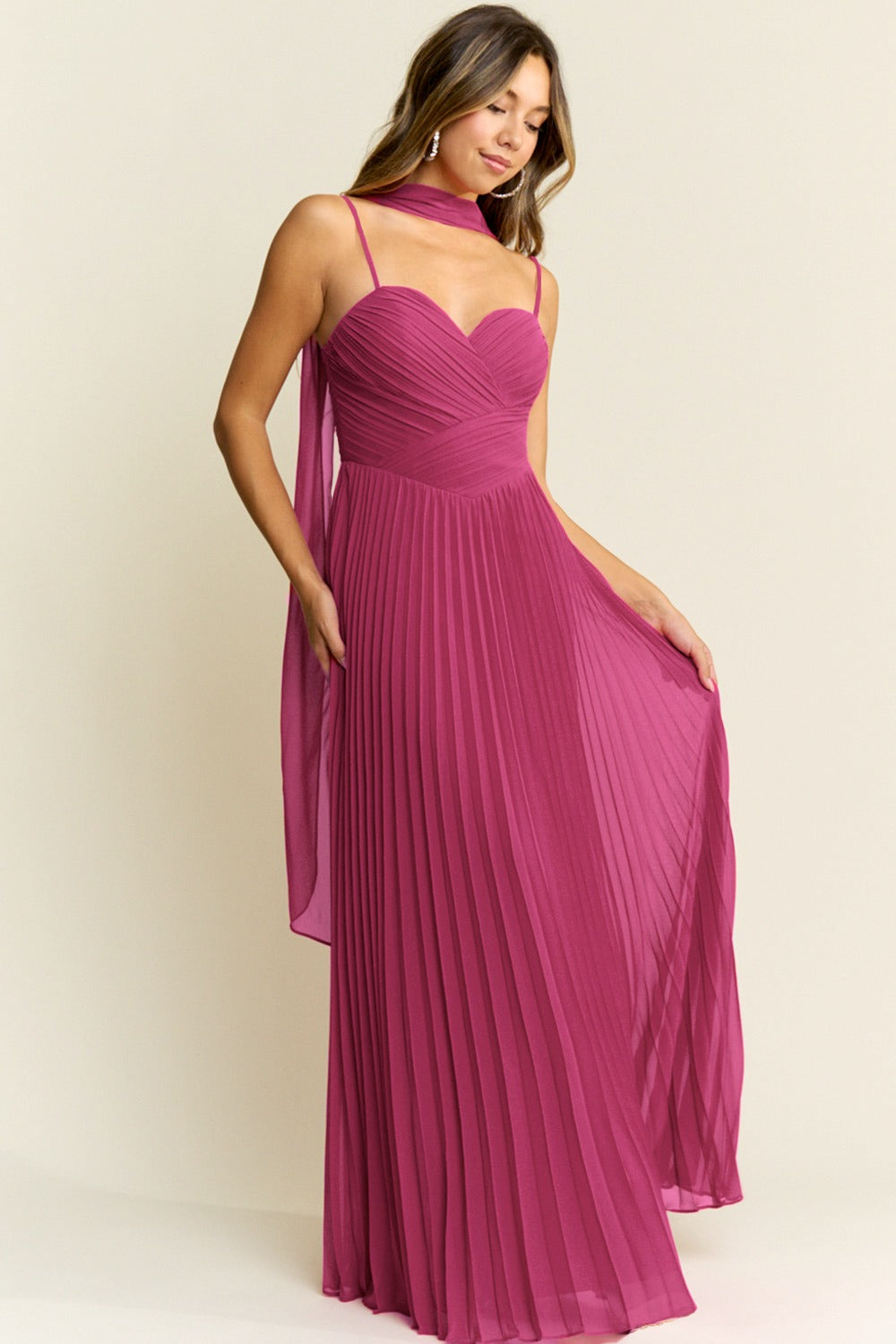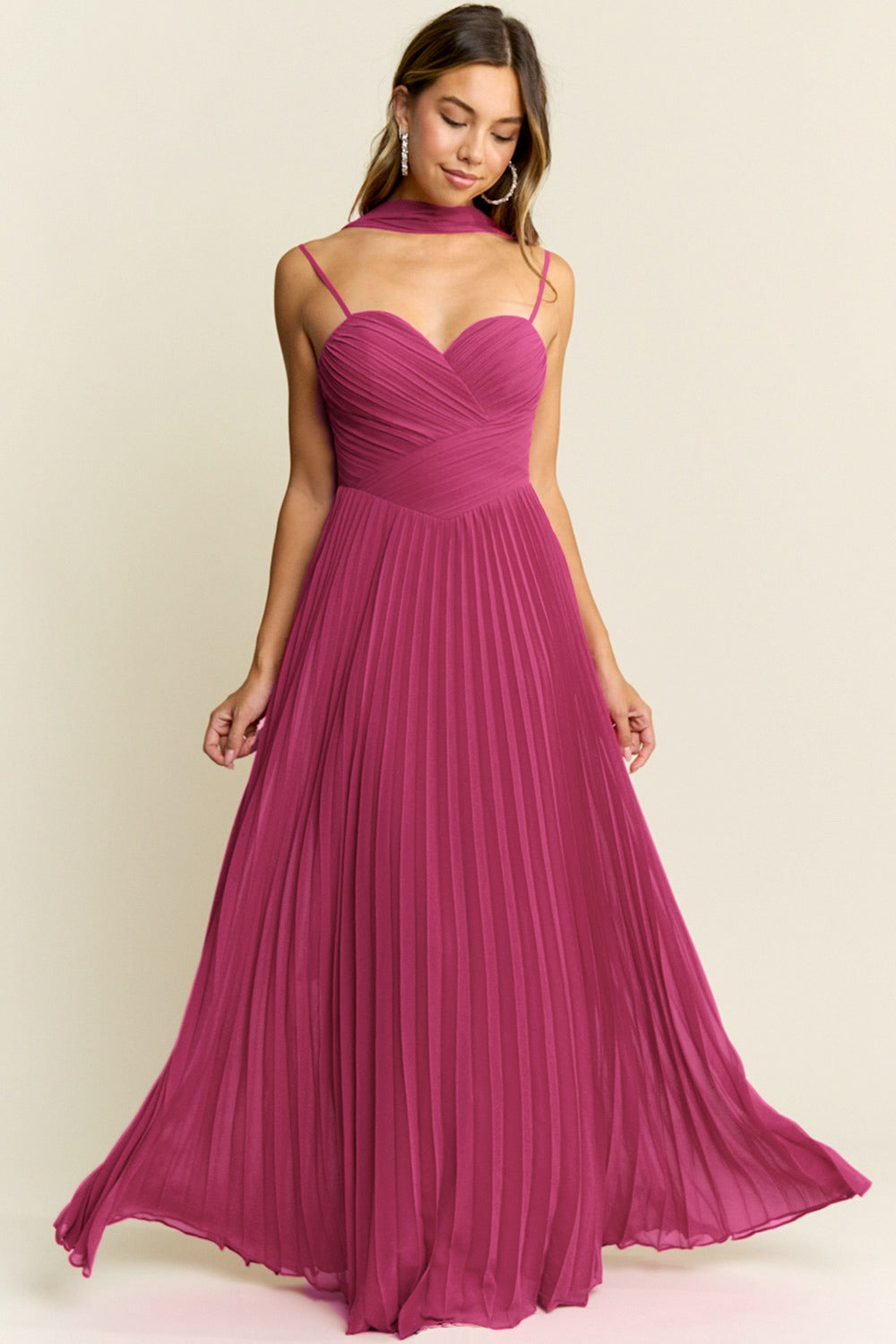 Descubre el Vestido Largo Plisado EV942, una pieza diseñada para mujeres que buscan elegancia, estilo y comodidad en un solo look. Su diseño con plisado impecable, escote corazón y tirantes delgados crea una silueta femenina y sofisticada que estiliza visualmente la figura.